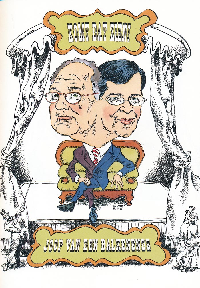 'Kenschetsen' portrayal of a workman's mate, and a morphed portrait of TV producer Joop van den Ende and Dutch Prime Minister Jan-Peter Balkenende as Joop van den Balkenende (From: 'Streken van een Serialtekenaar').