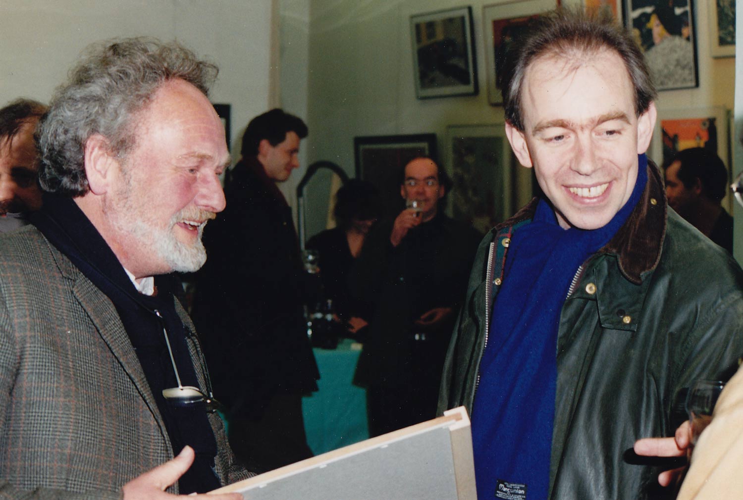 Bob van den Born with Joost Swarte on the opening of his exposition at Gallery Lambiek on 1 March 1991.