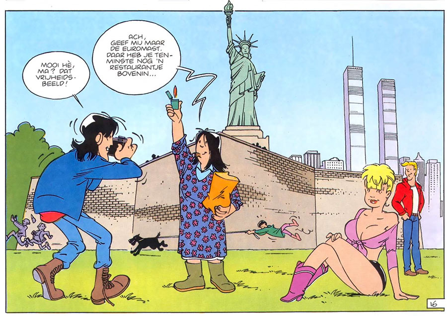 In addition, he has done artwork for 'Alfred Jodocus Kwak' merchandise, based on Harald Siepermann's designs. In 1992 he made a comic book adaptation of 'Flodder in Amerika' (1992), based on Dick Maas' comedy film of the same name and following a script by both Maas as well as Wijo Koek. Originally Martin Lodewijk was considered as the book's illustrator, seeing that he had already designed the movie posters for the franchise. Lodewijk designed two comic book panels, but had so much other work to do that he left this task to Bosma.