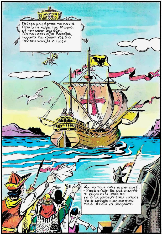 The story of Emperor Constantine XI Palaiologos, drawn by Mentis Bostantzoglou.