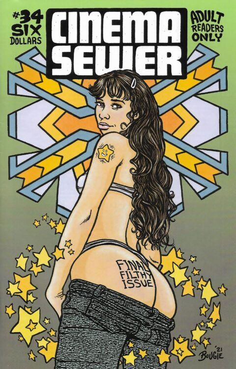 From this perspective, Cinema Sewer soon outgrew its niche as a mere "fanzine" and became a professional magazine. In October 2007, the British publisher FAB Press began publishing soft cover book collections, resulting in eight volumes. FAB Press also published the two-volume 'Graphic Thrills', documenting various adult movie posters. In 2021, Cinema Sewer was flushed down. After 25 years and 34 issues, Bougie lost interest and felt the subject had run its course.