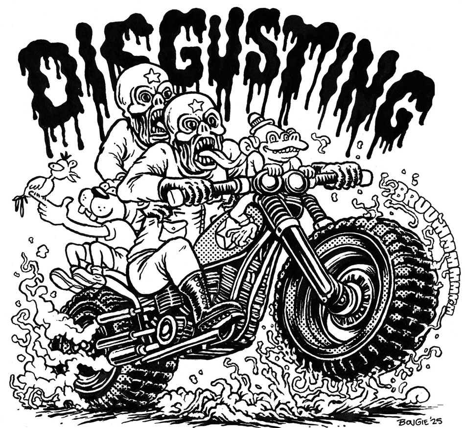 In addition to articles, Bougie also provided artwork and comics for Cinema Sewer. Other artists whose work was featured in its pages were Joseph Bergin, DJ Bryant, Rick Chessire, Chris Doherty, Sean Donahue, Maxine Frank, Danny Hellman, Mike Hoffman, Aaron Lange, James Lloyd, Brad McGinty, Ben Newman, Putrid, William Skaar and James Stokoe.