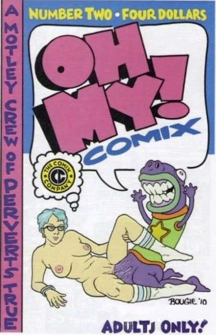 Most of Bougie's comics hold the middle between autobiographical stories, absurd comedy and humorous porn. He has never been ashamed about his interest in pornography, which goes beyond mere lust. Interviewed by Keri O'Shea (Warped Perspective, July 2013), he explained: "We're all consenting adults, so why the heck not? I'm a big believer that people only think something is 'wrong' if you ACT like it is wrong. I'm a pornographer, and I honestly think that is something to be proud of - and so I use the title of pornographer or smut-monger with a sense of pride and enthusiasm. (…) Ever since porn was legalized, if you were a woman you had to walk into a porn shop to be exposed to this kind of material - and that wasn't really open to you thanks to the cultural taboo of such an act, and also the fact that there wasn't really anything in there made for, or marketed to you - even if you were made welcome, which they were not. Now they can investigate and discover this stuff just as easily as men, and on their own terms. And if what they want to see isn't there, instead of picketing and getting all pissed off about it like the previous generation did, they get creative and make it themselves - how fucking fantastic is that?" Bougie also added that "every one of us is a sex-based organism. Own it!"