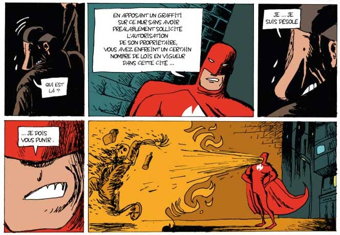 Bourhis has however also delved into contemporary subjects, like in 'Dans la Main Verte' (Futuropolis, 2009), in which he explores a world without oil. His 2008 comic 'Un Enterrement de Vie de Jeune Fille' (Dupuis) is a female and existential "road movie". Another comics road movie was 'Le Teckel', published as a diptych at Casterman in 2014-2015. He has worked with Spiessert on short stories and mini-books for Spirou magazine, as well as the graphic novel 'Hélas' (Dupuis Aire Libre, 2010) and a comics documentary on computer science ('Cyberbook' at La Revue Dessinée, 2015). He wrote the chronicle 'Juniors' for HalfBob at Futuropolis in 2015, and 'C.R.A.S.H.', another superhero parody, for Poipoi at Casterman in 2016.