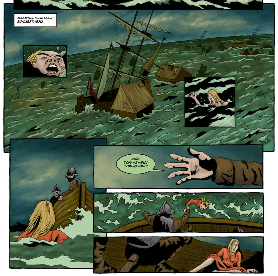Most of Braaksma's other comics are depictions of real-life Frisian history. His 2016 book about Saint Boniface ('Bonifatius en de Friezen - Het Stripverhaal') was commissioned by the Dokkum Museum, intended as supporting material for an educational program for primary schools. Braaksma's graphic novel 'Fete' (Afûk, 2019) dealt with the Great Frisian War between the Skieringers and Fetkeapers (1413-1422). The book presentation coincided with a joint exposition by the artist and the Mudhoen comic collective in the Museum Dokkum, about comics and Frisian heroes. Another promotional event about 'Fete', held in the Schierstins castle, featured a performance of the Frisian folk metal band Baldrs Draumar.