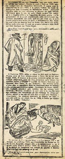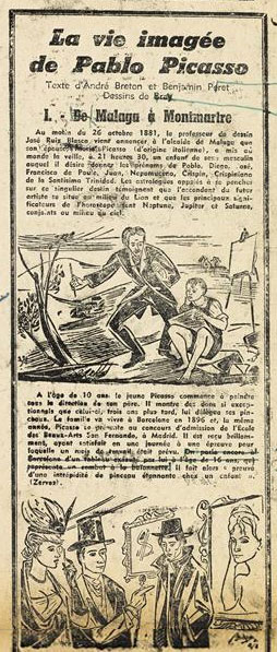 Between 28 December 1951 and 8 February 1952, the art magazine Arts serialized a comic strip about Pablo Picasso, written by the writer/poets André Bréton and Benjamin Péret and drawn by Paul Braig. The comic was presented in a text comics format, with text captions underneath the images. The story itself was printed vertically, as was common for French newspaper comics of the 1940s and 1950s.