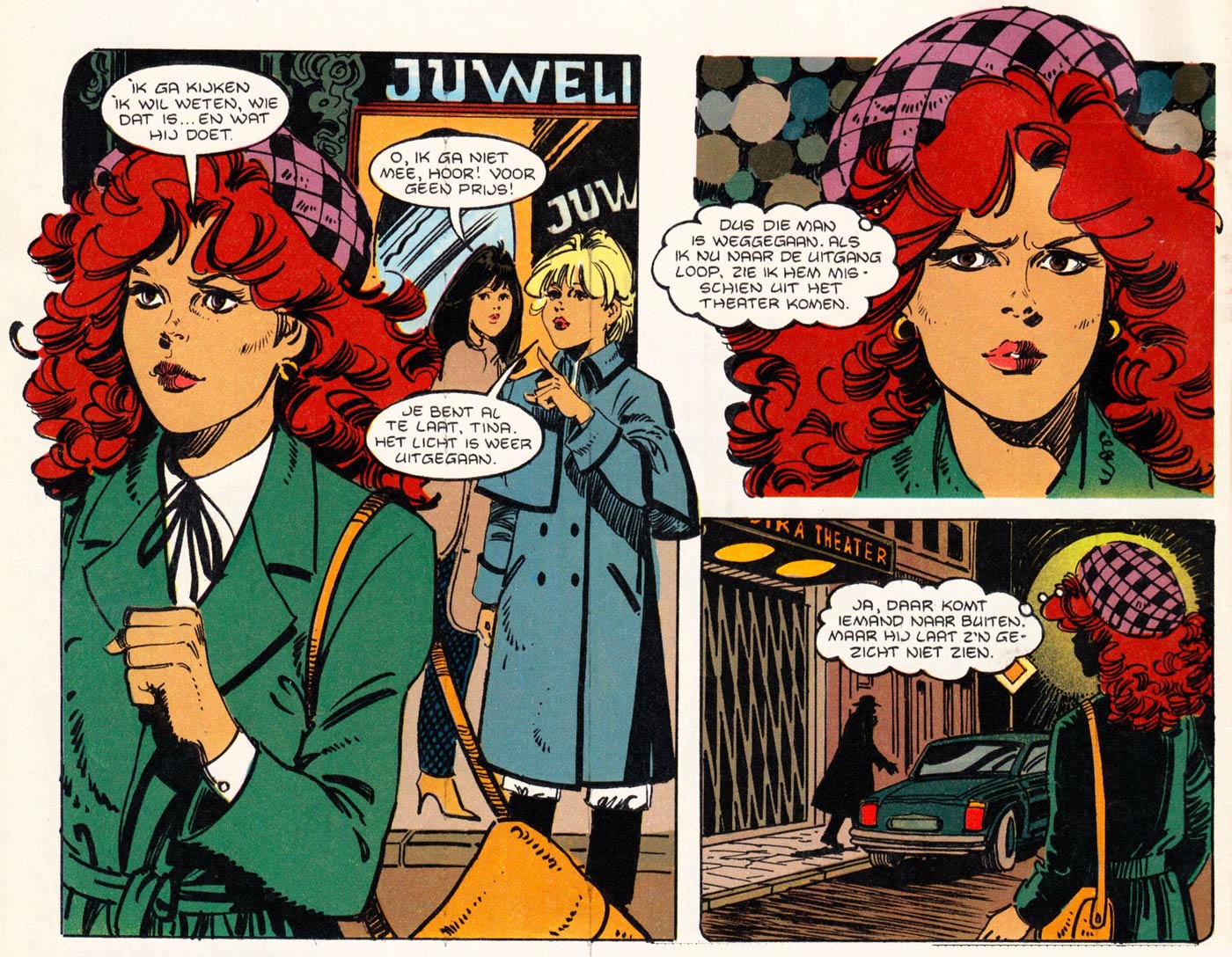 Tina en Debbie - 'Mode, Maskers en Misdaad' (Tina #26, 1982), artwork by Purita Campos.