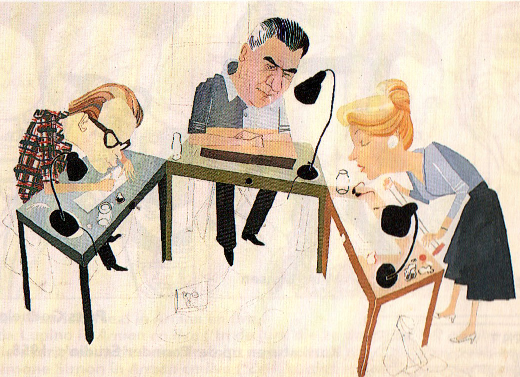 Ton Kooreman, Andries Brandt and Ank de Boer at the Toonder Studio's in 1958, by Thé Tjong-Khing.