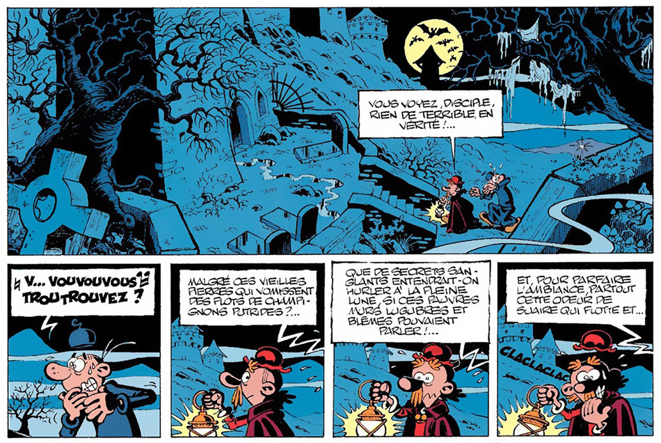 Background art by Michel Breton for Léonard #10: 'La Guerre des Génies'.