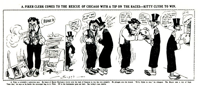 There, he created 'A. Piker Clerk', one of the first regular comic dailies with continuity. It dealt with horseracing and appeared on the sports page of the Chicago American in 1903. His pioneering work earned Briggs national fame and influenced such cartoonists as Frank King, Milton Caniff and Bud Fisher. In 1914 he returned to New York to stay, settling in the art colony of New Rochelle, and working the final years of his life for the New York Tribune. Briggs created a great number of cartoon features, such as 'When A Feller Needs A Friend', 'Movie Of A Man', 'Someone's Always Taking the Joy Out of Life', 'There's at Least One in Every Office', 'Real Folks at Home', 'Mr. and Mrs.' and 'Danny Dreamer'. Many of these titles have become national catchphrases. 'Mr. and Mrs' also spawned a CBS radio series from 1929 to 1931.