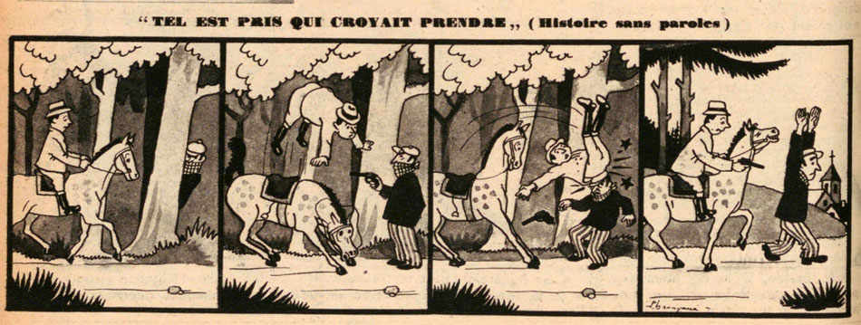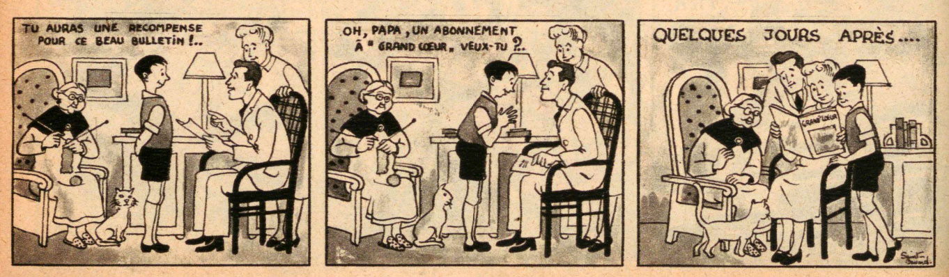 In issues #40 and #41 of 1946, Grand Coeur also ran Saint-Bavard's 3-page story 'La Sagesse du Cadi', showing a trick by a North-African qadi (judge) to confuse a thief.