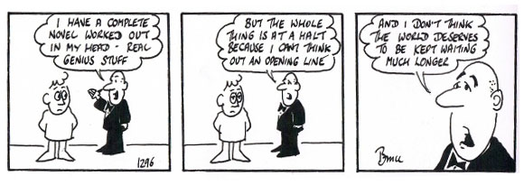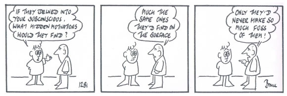 In his spare time, Bruce was making his own cartoons, including a philosophical and satirical comic strip called 'The Druid'. Through a friend, he was introduced to Douglas Gageby, the editor of The Irish Times newspaper. Gageby liked Bruce's 'Druid' comic strip, and ran it in the Times for a period of six years, from 1969 to 1975.