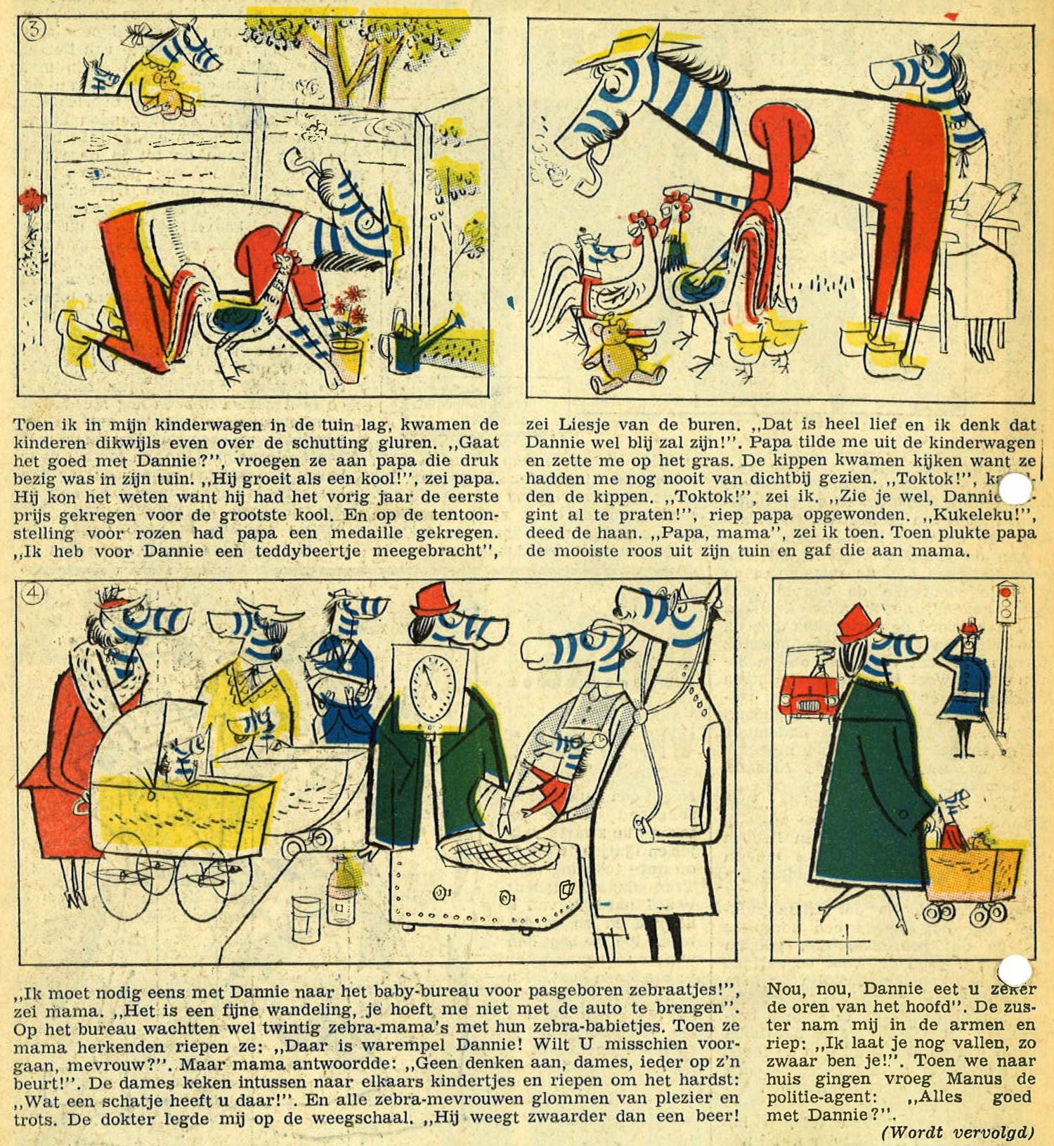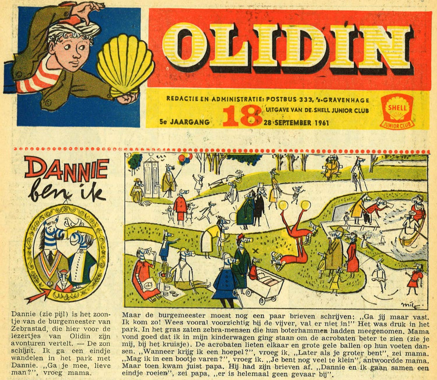 Brumsteede is additionally the author of the experimental text comic 'Dannie Ben Ik', about an anthropomorphic zebra in the town of Zebrastad. It was published in 1961 in the issues #17 through 22 of Olidin, a promotional children's magazine for petrol company Shell, which was produced by the Van Maanen advertising agency. Other important contributors to Olidin were Wim Giesbers, Frits GodhelpFriso Henstra, Niek Hiemstra, Hans G. Kresse, Jan Kruis, Ted Mathijsen, Joost Rietveld, Chris Roodbeen, Jan van der Voo, P. Visser, Dick Vlottes, Carol Voges, Joop Wiggers and Piet Wijn. In issues #4 through 13 of 1963, 'Dannie' returned in an illustrated text story called 'Dannie's Grote vakantie'.