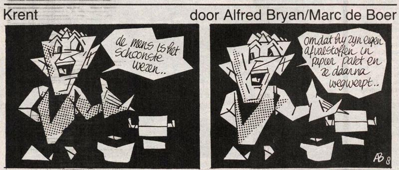 Alfred Bryan was a Dutch comic artist, illustrator and cartoonist, who drew the short-lived comic strip 'Krent' (1985) for the Communist newspaper De Waarheid, in collaboration with Marc de Boer