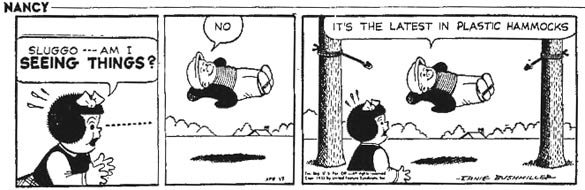 'Nancy' gag from 27 April 1953. Jim Woodring called it "the greatest comic panel ever drawn".