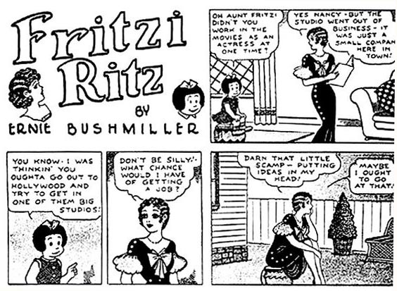 His daily 'Nancy' production became such a full-time occupation that Ernie Bushmiller had to hire assistants. The first was John Pierotti, who worked with him in the 1930s. Starting in the late 1940s, Bushmiller left 'Fritzi Ritz' mostly to his assistants Bernard Dibble and Al Plastino. Additional ghost artists were Loy Byrnes (1940s), Alan Maver, Frank McLaughlin, George Wildman (1970s) and Will Johnson.