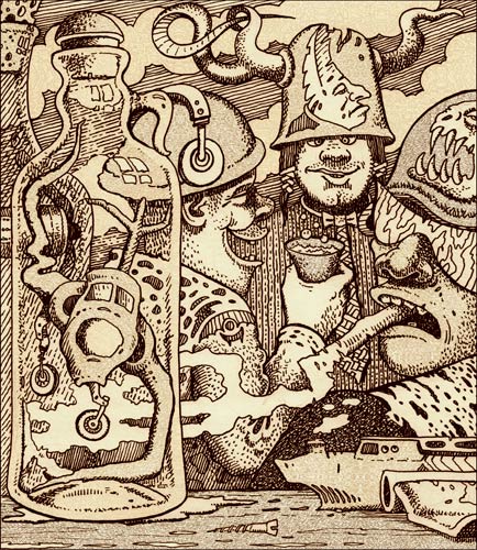 André van Buuren, who writes his name 'andREVANbuuren', is known among art collectors and amateurs for his surrealist paintings. He is also an artist with a non-commercial and non-conventional drive, who enjoys drawing comics and cartoons. He publishes his comics on the StripSter comics portal, such as his adventure strip starring 'Duk Denny', a pilot loosely based on Victor Hubinon's 'Buck Danny'. Accompanied by his none too bright colleagues and a lost Indian tribe, Duk underwent his first adventure, called 'Vliegtuig naar de Maan', in a total of 24 pages.