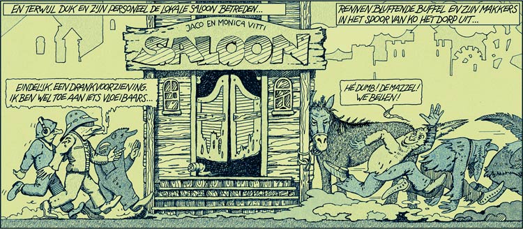 The follow-up, 'De Wraak van Duk Denny', was published in the Stripschap magazine Stripnieuws in November 2012. The story is a tribute to a long line of artists Van Buuren admires, like Benito Jacovitti.