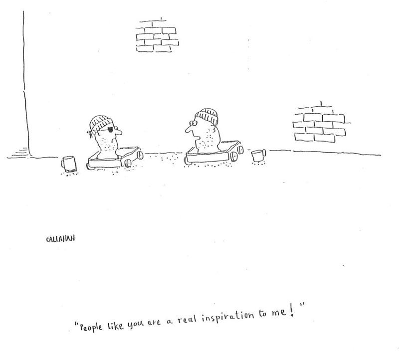 John Callahan was an American cartoonist from Portland, Oregon, known for his often controversial cartoons about disabilities. Callahan became a quadriplegic after a car accident at age 21. He taught himself how to draw by clutching a pen between both hands. Callahan used his sketchy and rough visual styles for making cartoons filled with black humor. Although some deemed his work politically incorrect, Callahan considered his work therapeutic. His cartoons appeared in the Willamette Week for 27 years. The animated cartoon series 'Pelswick' and 'Quads' were based on his cartoons. Callahan was also active as a painter and songwriter.