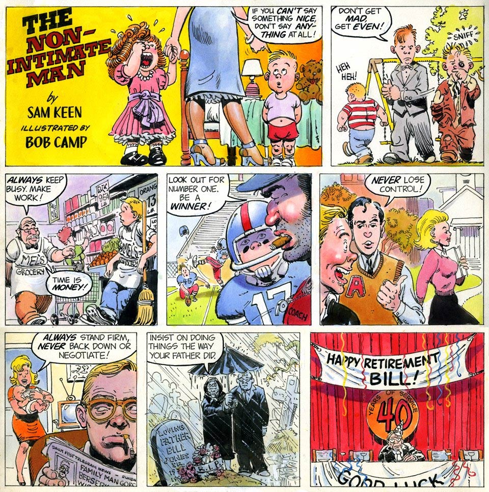 'The Non-Intimate Man', scripted by Sam Keen, drawn by Bob Camp. Cover piece for Family Weekly magazine (2008).