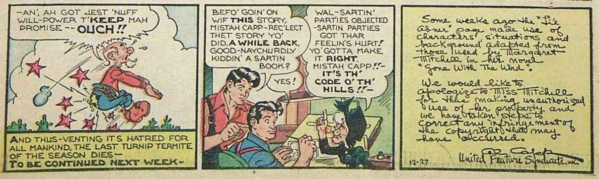 Al Capp's apology for his 'Gone With The Wind' parody (26 December 1942).