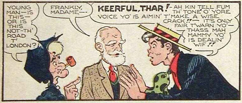 Mammy Yokum and Abner meet George Bernard Shaw, one of the cartoonist's favorite writers.