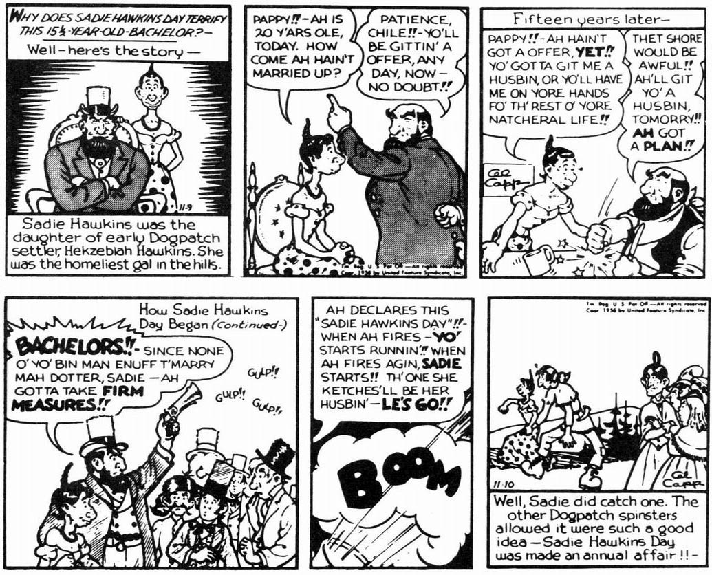 Sadie Hawkins Day was first introduced in November 1937, and then returned annually.