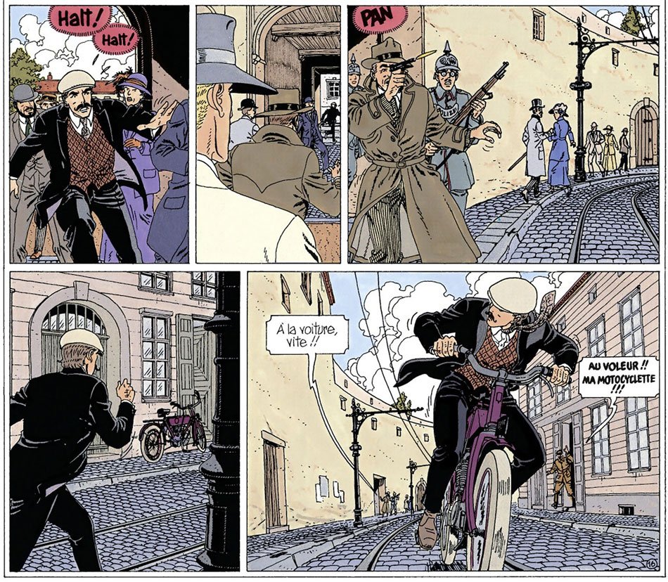 Main character Victor Sackville is a secret agent in service of the British king George V in the years around and during the First World War. Codename X67, this slick gentleman - well-coiffed with a stylish mustache - is sent on secret missions all over the world, from the Netherlands to Mexico and from Egypt to Spain. Wherever Sackville goes, he is confronted with German foes. The well-documented scripts are rendered graphically in a Clear Line-inspired drawing style that successfully recreates the atmosphere of this eventful time period. With great detail, Francis Carin depicts the architectural characteristics of the various places where the action takes place.