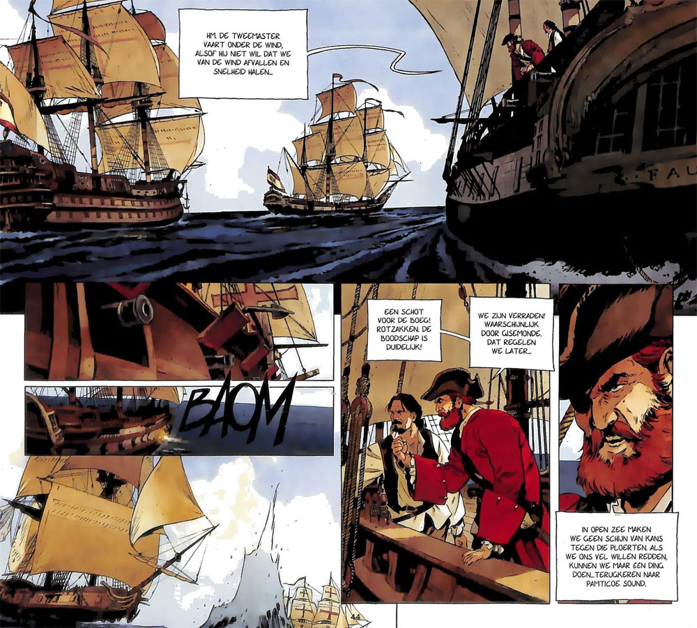 Cover illustration for the 'Barbe-Rouge' album 'Les Chiens de Mer' (2021). ©Carloni/Kraehn/Dargaud.