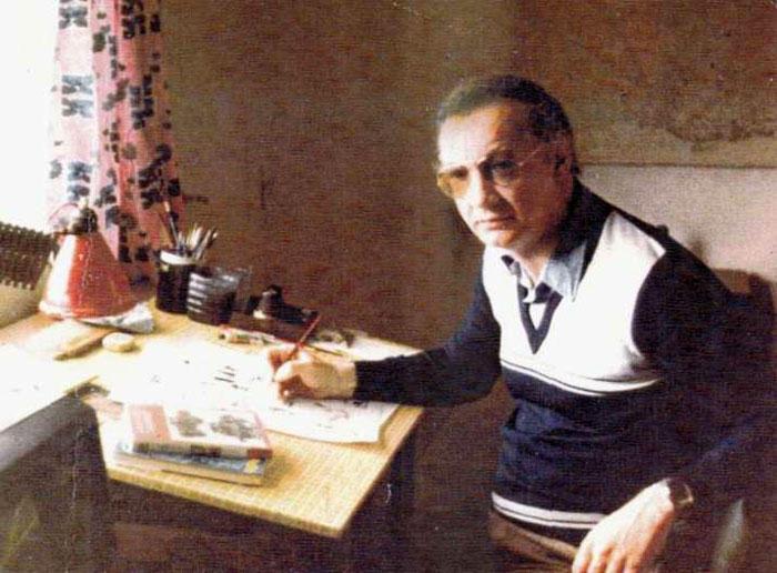 Alberto Luis Caruso was born in 1941 in Buenos Aires. In the city's Villa Pueyrredón neighborhood, the family rented a front part of a house owned by the Zanotto family, who had just moved from Italy. As luck would have it, their son was the future comic artist Juan Zanotto. Even though Juan was six years Alberto's senior, the two boys became close friends as they shared a passion for drawing. They later started their careers in comics almost simultaneously. Caruso studied at the Pan-American School of Art, where his teachers were the comic creator Alberto Breccia and the illustrator Ángel Borisoff. In the early stages of his career, Caruso took inspiration from many cartoonists, picking out elements which he liked from each one. Important influences were his former teacher, Alberto Breccia, as well as Hugo Pratt, Harold Foster and especially the Italian artist Gino D'Antonio.