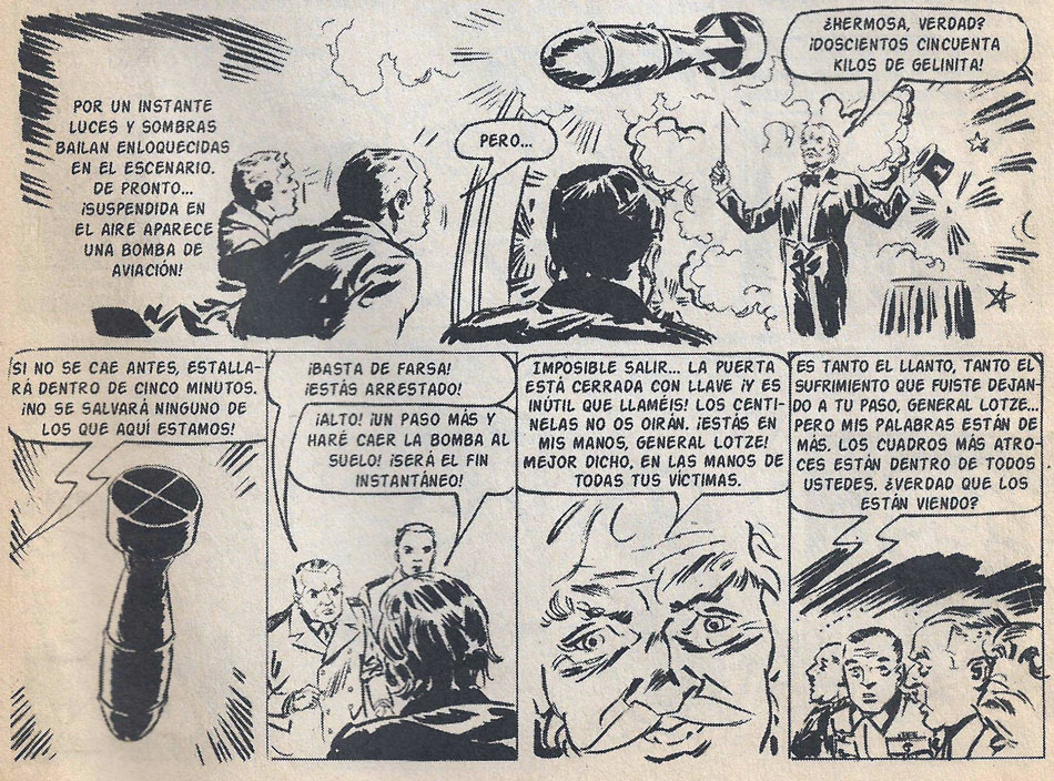 Still in 1964, Caruso began his enduring association with Editorial Columba, which lasted, despite some interruptions, for over thirty years. By then, the publisher was one of the few companies that survived the 1960s media crisis, and effectively monopolized the Argentinian comic industry. Continuing his work in the war genre in the anthology magazine D'Artagnan, he started out with drawing stories like 'Extraño Parecido' ("Strange Resemblance" 1965) and 'Morir en Sicilia' ("To Die in Sicily", 1966). Working with writers like Pedro Mazzino, Robin Wood, Héctor Germán Oesterheld, Noel McLeod, Hernán Ferret and José Luis Arévalo, he continued to create dozens of short stories for the Columba magazines D'Artagnan, Fantasía and Intervalo in the next couple of decades. One notable contribution to D'Artagnan was 'La Magia Suprema' ("Supreme Magic", May 1972), a poetic World War II story by Oesterheld about a single man whose action can keep the German army from its final and decisive victory at Stalingrad.