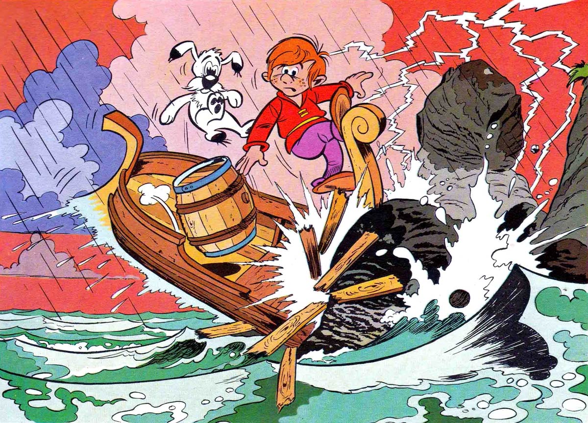In 1965, nineteen-year old Gilles Chaillet was hired by Éditions Dargaud as a temporary replacement in its art department, but instead he stayed with the publishing company for the next twelve years. At Studios Dargaud, he did the coloring for the pages of Albert Uderzo's 'Tanguy et Laverdure', Michel Greg's 'Achille Talon', William Vance's 'Bob Morane' and Jean Giraud's 'Blueberry' pages. He also provided the lay-outs for Dargaud magazines like Bonjour Bonheur, Chez Nous and Les Grandes Classiques du Roman Film, as well as the books 'Maudits Rois Fainéants' (1973) and 'Z'Heureux Rois Z'Henri' (1974), which were related to TV shows by the French comedians Roger Pierre and Jean-Marc Thibault. In 1966, Chaillet drew a couple of gags for Tintin magazine, while he also made some illustrations for Le Journal du Dimanche.