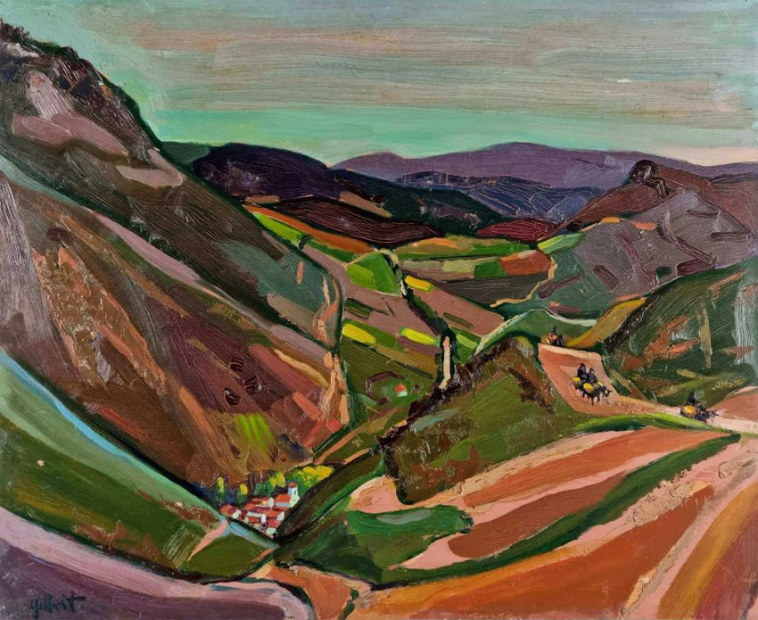 By the 1950s, Gilbert left the field of youth magazines, and instead focused on his career in painting. In the 1950s, he travelled through the Ardennes, Andalusia, Greece and Yugoslavia, visiting Macedonia in 1958. As an expressionist and figurative painter, he was known for his light watercolor palette. He also made landscapes. In a way, his style has a resemblance with modern-day graphic artists like Philippe Petit-Roulet and François Avril.