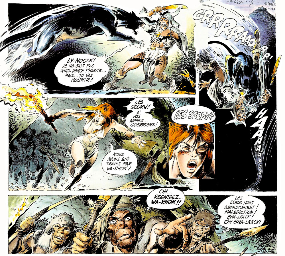 Through the bestseller 'Rahan', Chéret could rank himself among the great French comic artists. His work was imbued with techniques borrowed from American comic books, like its detailed anatomy and revolutionary way of framing. Unlike most other European comics, Chéret dared to give his panels dynamic viewpoints and a cinematographic direction, adding much appeal to his action-filled pages. When Mourad Boudjellal's new publishing label Soleil picked up the series in the early 1990s, the volumes quickly reached print-runs of 60,000 copies within a couple of months. It provided Soleil a headstart in investing in new comic series, most notably the even more successful 'Lanfeust of Troy' franchise. 'Lanfeust' authors Didier Tarquin and Scotch Arleston have both called 'Rahan' an important influence on their own creations. Another artist influenced by 'Rahan' was Tibor Szendrei