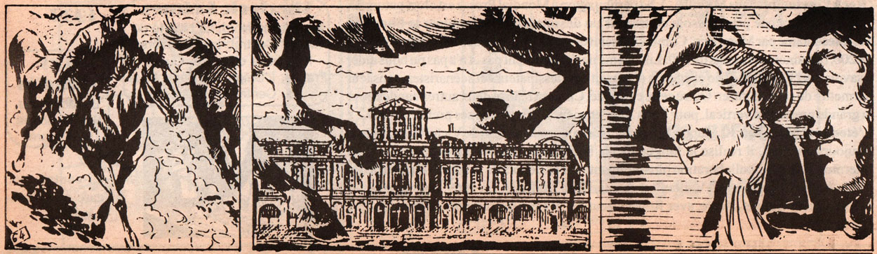 With Koernig, Chéret additionally made illustrations and short strips for magazines like L'Avant-Garde and Femmes Françaises, often in a comical style. His drawings in ink wash appeared in the French news weekly Radar by Éditions Nuit et Jour. Around the same time, he worked on a couple of newspaper comics for the regional press. The vertical text comic strip 'L'Étonnant Monsieur K.' (1960) was based on the Ukrainian novel 'Nikita Khrouchtchev' (1957) by Victor Alexandrov, and published in Paris Jour. Chéret also made a horizontal comic strip adaptation of the Arthur Conan Doyle novel 'The Refugees' (1893), serialized in 296 daily episodes as 'Les Réfugiés' (1961) in the newspapers La Montagne, Bonne Soirée and Le Progrès through Intermonde Presse. By 1961, he was hired by Cino Del Duca's Mondial Presse agency to finish the ongoing 'Sherlock Holmes' serial (1961), drawn by a certain Marc-Eric since 1959. Chéret illustrated between 100 and 200 strips, which appeared in papers such as La Voix du Nord, La Liberté du Massif Central, Les Dernières Nouvelles d'Alsace, Ouest-France, L'Union, La République du Centre and Sud-Ouest. Years later, Chéret made another comics adaptation for the pocket book Télé Feuilleton by the SFPI, based on the TV series 'Vidocq' (1966).