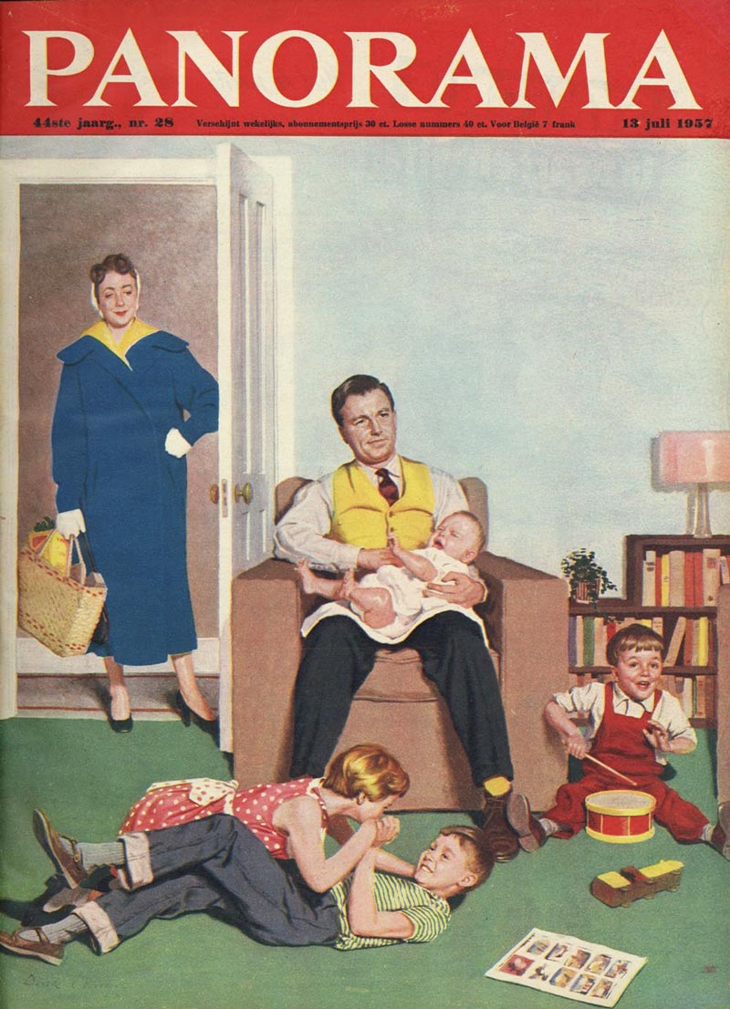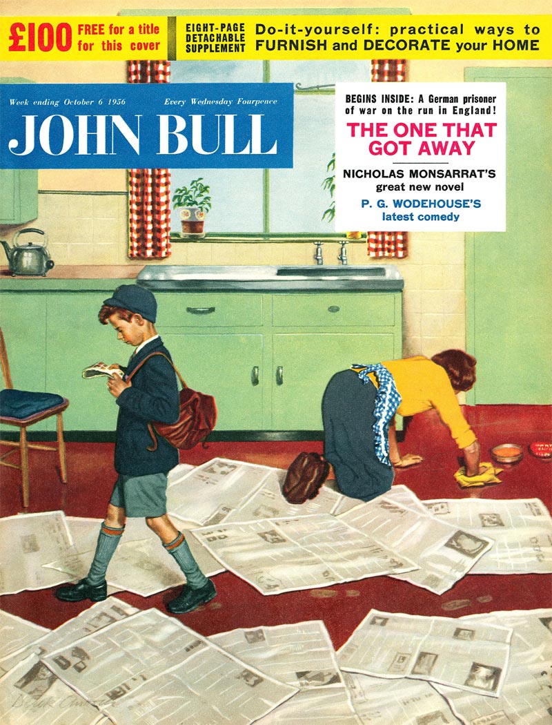 Two cover paintings for John Bull (8 October 1956, 2 March 1957), the latter as featured on the cover of Dutch magazine Panorama (13 July 1957).