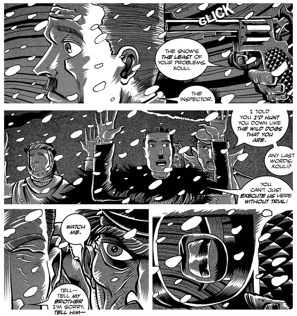 Together with a couple of other artists, he formed the SubArt collective, and a 2002-2004 anthology series of the same name. In 2005, Chrisoulis and three other former SubArt members initiated the first 24-hour comic event in Greece. During the 2000s, Chrisoulis also supported other creators in self-publishing and distributing their comics, while participating in several indie comic books and zines himself, including 'Sapilla' #1-3 (2004-2005), 'Red.Dot Comix' #10 (2004) and #12 (2005) and Giannis Milonogiannis' 'Roppongi' #2 (2006).