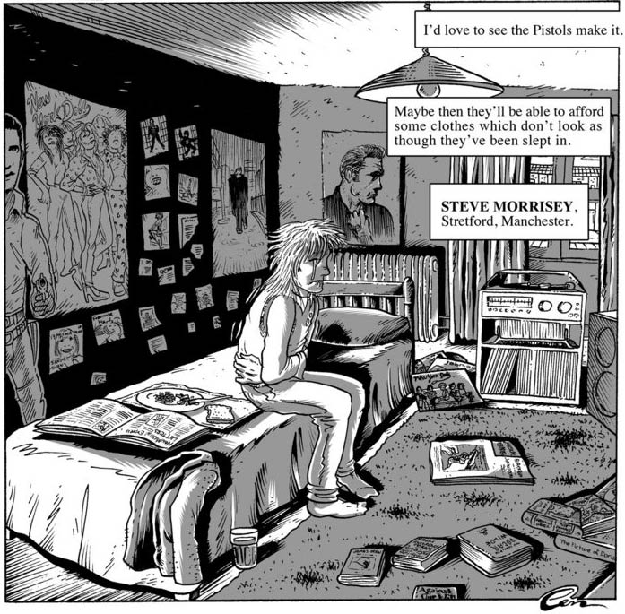 Between 2012 and 2014, Chrisoulis wrote and drew the daily online comic strip 'Tales of The Smiths', detailing the early unknown days of Morrissey and the seminal indie band The Smiths. Omnibus Press released the full story in a 450-page collected edition in 2018. After The Smiths, he embarked upon a weekly online graphic biography about David Bowie on the Patreon platform, called 'Rebel Rebel' (2016- ), that has run for over 300 weekly episodes since. By 2017, he was simultaneously researching and serializing 'King', a graphic biography about the Ashkenazi Jewish origins of the legendary Marvel Comics creator Jack Kirby. Chrisoulis also released print editions for the Patreon supporters of his projects.