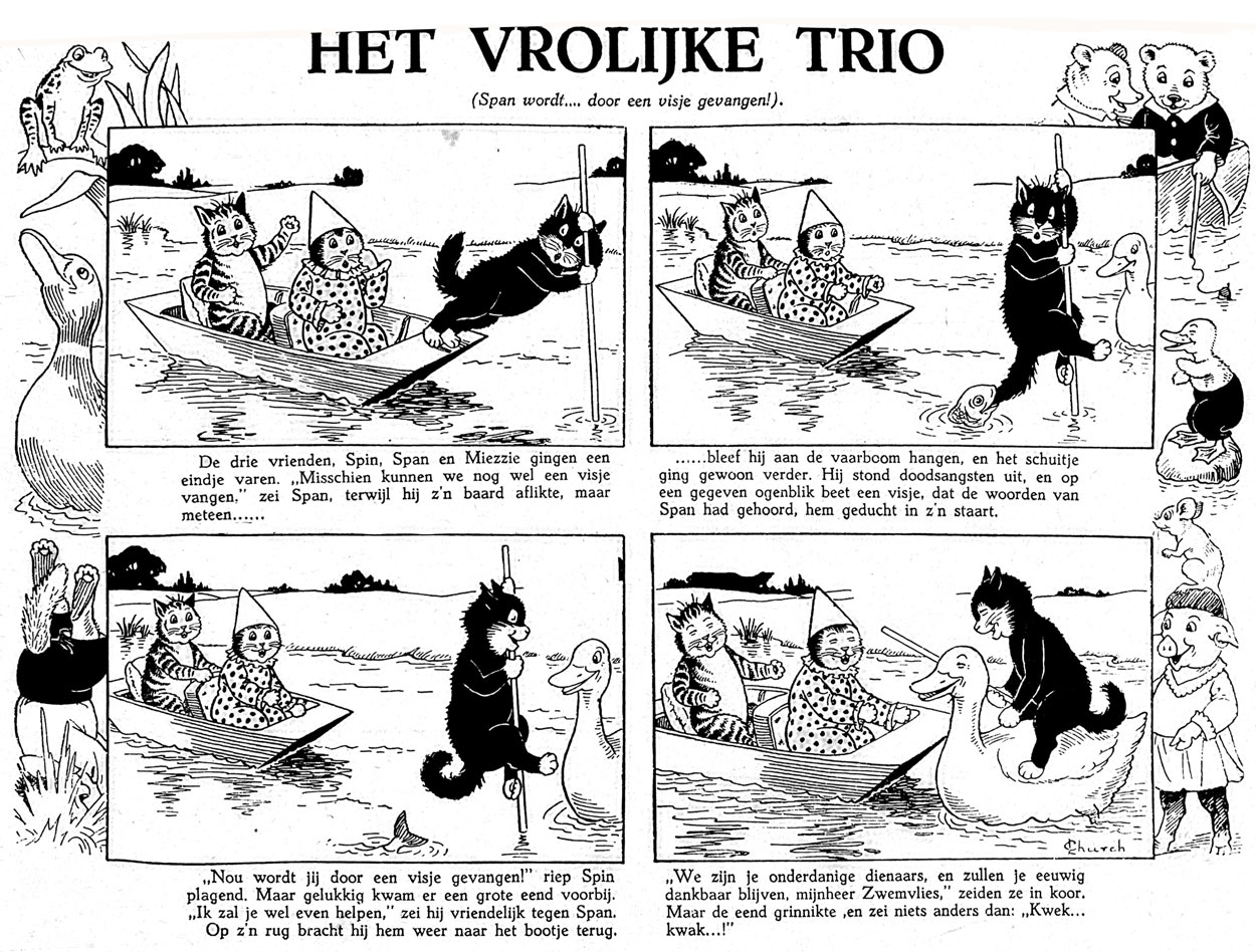 Panel from one of L. Church's kitten comics, printed in the Dutch children's magazine Olijk en Vrolijk, 1938.