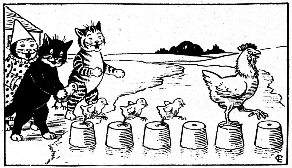 L. Church was an early-20th-century British comic artist working extensively for nursery comics of the 1920s and 1930s. Several of his stories, which use the text comic format with narration printed underneath the images, feature cute little kittens.