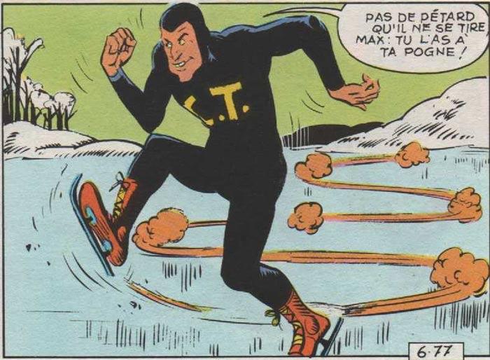 Cimpellin worked as an agency artist for Roy D'Ami's studio too. From the mid-1960s until the early 1970s, he produced western stories for Lug, the Lyon-based publisher of pocket comic books. These included features like 'Rex l'Audace' (in Fox), 'Sergent Guib' (in Kiwi), 'Zapo' (in Bronco), 'Ted Brenton' (in Blek), 'Ben Catastroph' (in Ombrax) and 'Dan Tempête' (in Zembla). One of his lesser known creations is his comic about French 17th-century rascal 'Tom Patapom', who runs away from home and finds himself in adventures all over the world (and in space). The young adventurer first appeared in the short-lived French magazine Tchak! (Ed. Aventures et Voyages) in 1969, and then in the German comic book Félix (Bastei Verlag) in 1972-1973. Cimpellin additionally drew war stories and features like 'Spy 13' and 'Dick Turpin' for the publications of Fleetway and DC Thomson in the UK.