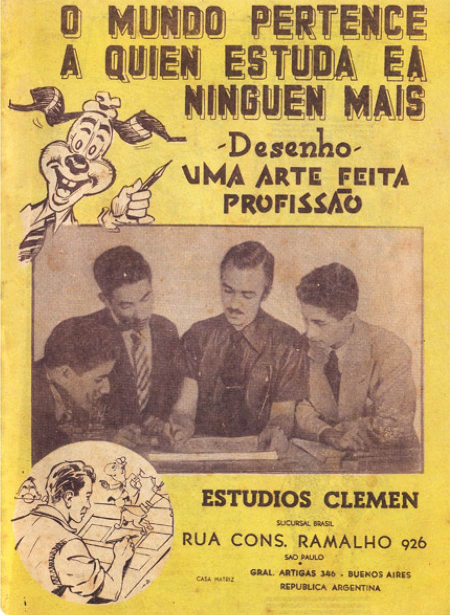 Opening brochure for an Estúdios Clémen division in São Paulo, Brazil. Carlos Clémen is in the center (with mustache), surrounded by some of his students. On his left is José Del Bó, AKA José Delbo. The Brazilian course never got off the ground.