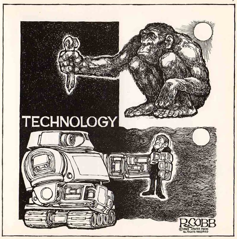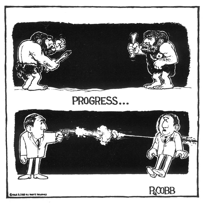 By the mid-1970s, Cobb decided to quit cartooning. Despite pleasing a worldwide audience of left-wing hippie readers, he was nevertheless barely able to earn a living. He also found it increasingly difficult to reach his daily deadlines and fell into a depression after the untimely suicide of his good friend Phil Ochs in 1976. Cobb would occasionally create new cartoons from time to time for the L.A. Times and more obscure publications. But most of his time and energy went to a new passion: artistic design for films and TV series, which consequently paid a lot better.