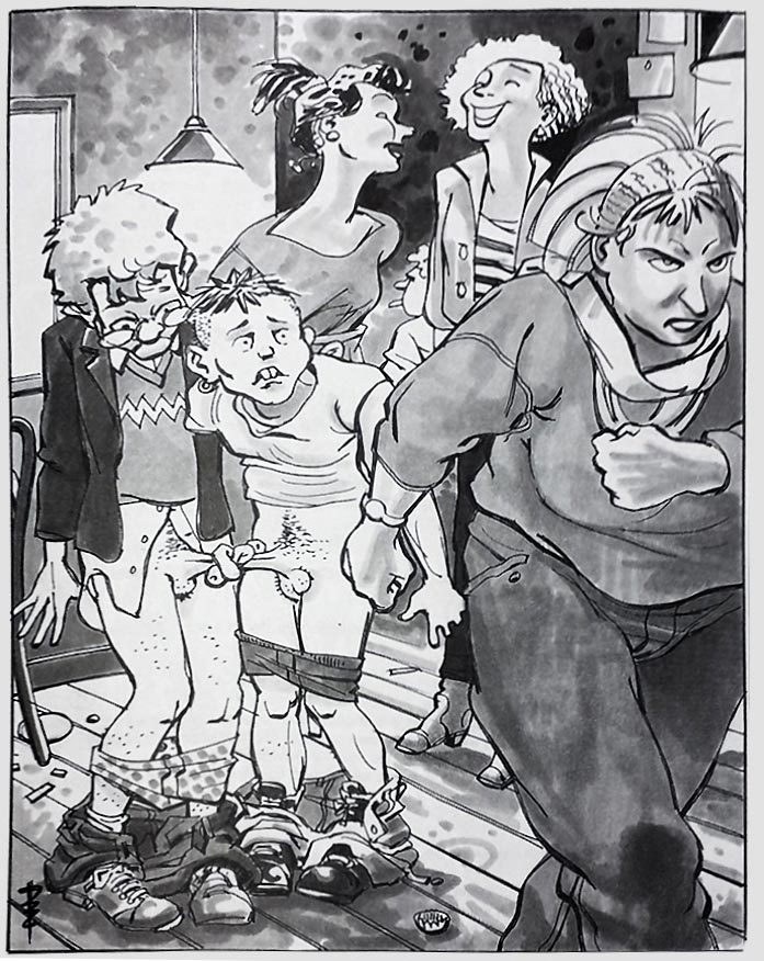 The Universiteitskrant regularly received complaints about the explicit drawings and many sexual references in Cornelius' comic 'Mussengang', especially regarding female students. Critics found the strip offensive, vulgar and women-unfriendly. Yet 'Mussengang' was by far the best-read feature of the newspaper. Apart from the explicit scenes, the storylines were inspired by campus current affairs, and events took place at well-known spots in the city. The strip received such an iconic status among students, that it spawned merchandising like T-shirts, calendars and booklets, as well as a 1998 series of theater shows. And even though 'Mussengang' ended in 1995, the paper still receives requests for a reboot.
