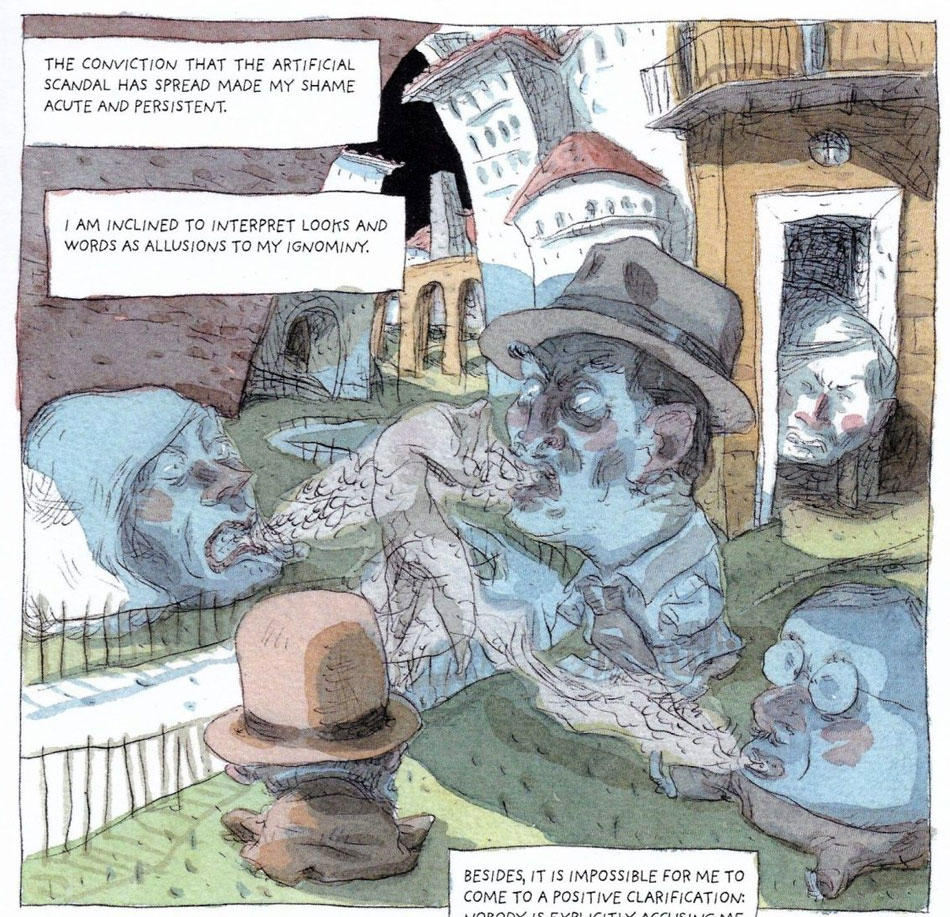 Another multi-volume project by Corona was 'L'Ombra di Walt' ("The Shadow of Walt", Cococino Press, 2008). It follows an anthropomorphic dog called Walt, who works as a painter during the Great Depression. He is tormented by his artistic ideals and the harsh reality of his troubled past and hopeless financial situation. In a reference to Walt Disney, Corona's characters have animal heads that seem to become some kind of masks. Interviewed by Paola Bristot on www.stripburger.com, Corona explained: "They were created as a counterpart to the great American economic crisis; they have completely lost their original features (in their appearance as well as their behavior) and are condemned to a life in this world, lost forever and irrevocably introverted. (...) The characters function without the knowledge of the higher purpose and reason, like we all do in fact. Past can be reassessed or relived, that's true, but such consciousness is false, deceptive and cannot be altered - the past reveals to be a sort of an artificial limb. Decline reigns over everything, so restoration is inconceivable." A second volume of this graphic novel project appeared in 2009 under the title 'Il Mercato Nero'.