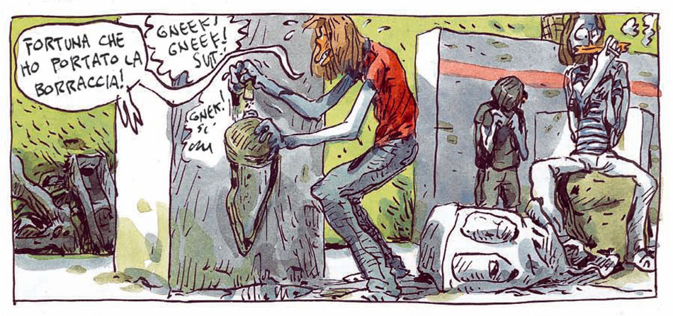 Marco Corona was born in 1967 in Carmagnola in North West Italy, not far from Turin. His father worked as a mechanic, his mother was a housekeeper. Among his graphic and narrative influences are George Herriman, Andrea Pazienza, Tove Jansson, Dino Buzzati, Jack Kirby, Charles Burns and Robert Crumb.