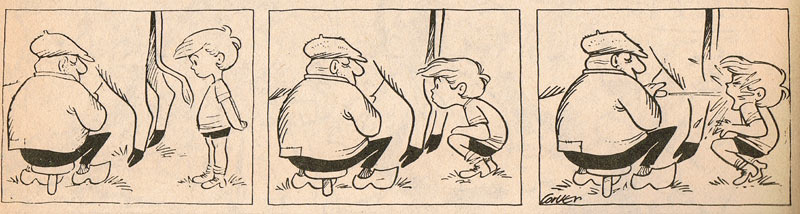 Cor Versteeg was born in Utrecht. He began his career as an artist at the promotional departments of Douwe Egberts and De Gruyter. This included the series of eight children's booklets starring 'Kabouter Krikmik', made with René Cooijmans in 1969. With Frits Verhorst, Versteegh had made his first comic earlier on in 1955, called 'Kareltje Kloek en de Multihoed', and published in Utrechts Katholiek Dagblad. He also made 'Mies Helena' for Het Blad voor de Huisvrouw and 'Julius Hofnar' in Taptoe.