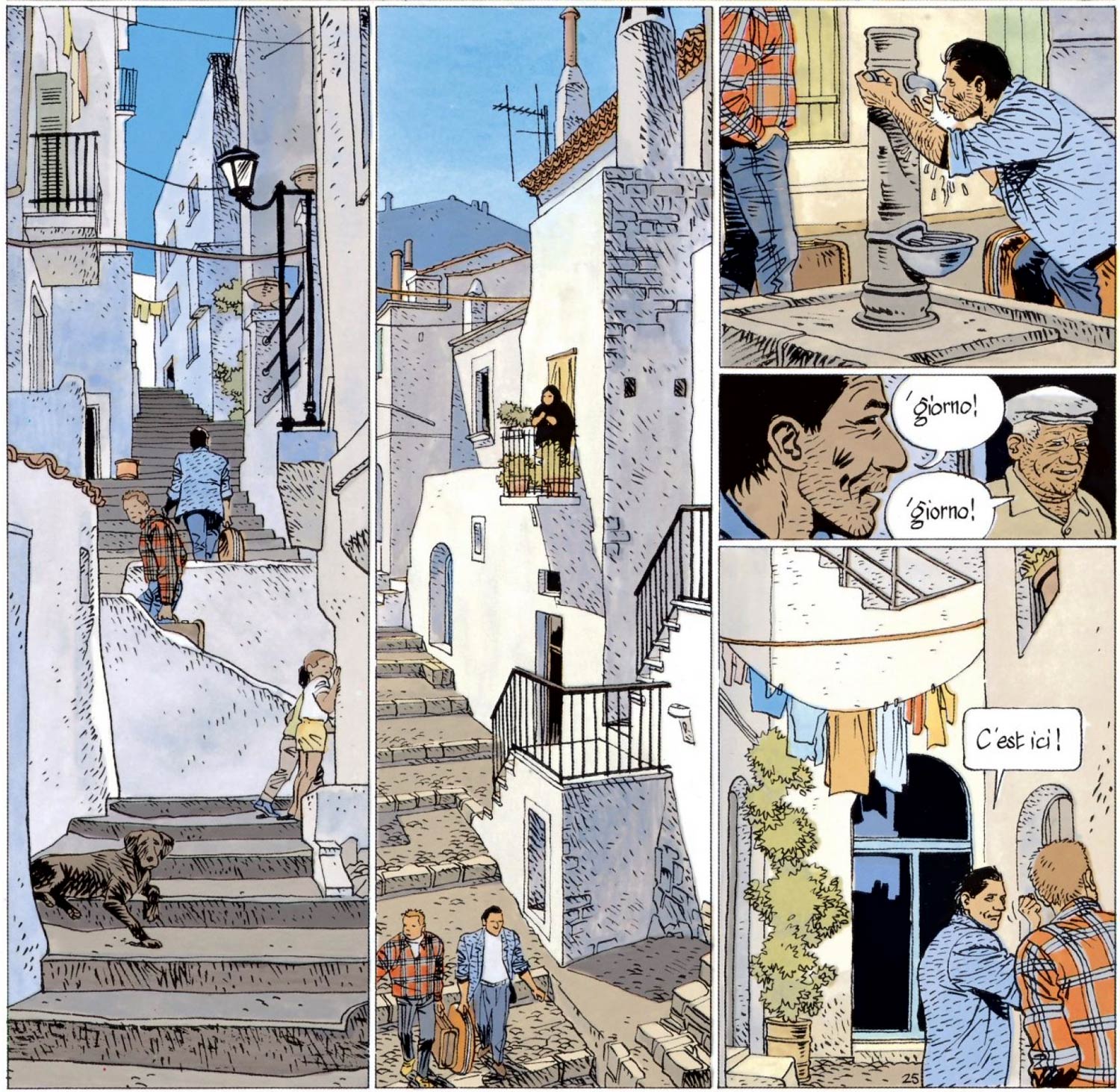 In 1988, Cosey drew 'Voyage en Italie' ('Travel to Italy', 1988), which follows a depressive Vietnam veteran and his friend who travel from the USA to Italy. They decide to look for a former girlfriend they both once had a relationship with. To their surprise, she turns out to have joined a monastery, where she takes care of Keo, a young Cambodian refugee who is illegal in the country. Keo dreams of visiting the United States and thus the three friends take it upon them to bring the little girl there, no matter how difficult this attempt will be. Normally, Cosey would've published the comic in Tintin magazine, but Lombard didn't even show interest, since their magazine's sales were already going downhill. Luckily, Jean van Hamme had launched the graphic novel collection 'Aire Libre' at Éditions Dupuis, which focused on more mature readers. 'Voyage en Italie' became one of the collection's earliest titles and was a critical success, paving the way for more one-shot stories by Cosey.