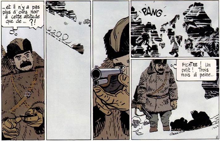 His first full-length one-shot comic story was 'À la Recherche de Peter Pan' ('Searching for Peter Pan', serialized in Tintin magazine from issue #23, 7 June 1983 until #41, 9 October 1984). Set in the 1930s, it tells the tale of a British novelist who travels to the Swiss Alps to search inspiration for his next book, but also to find out more about the death of his half brother Dragan, who died in a local hotel. In his back pocket, he carries a copy of James Barrie's play 'Peter Pan'. During his journey, he learns that he has to be quick, since the village where the hotel is located could get covered in an avalanche once one of the glaziers breaks. Yet something strange is going on, because he often notices a pianist in the local hotel playing compositions his brother used to play...
