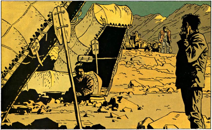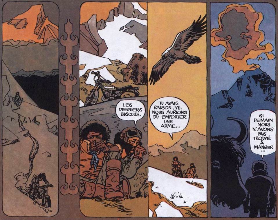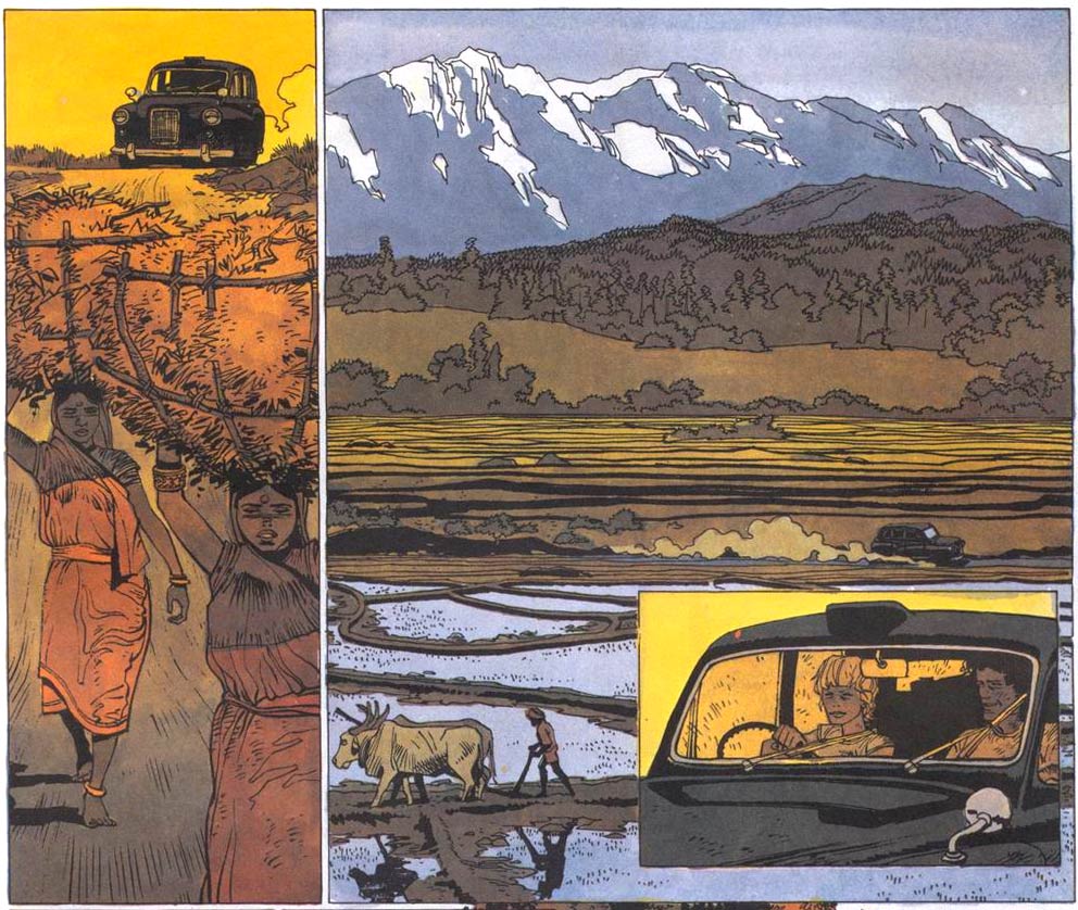 Despite - or thanks to - the unusualness, 'Jonathan' struck a chord with readers. Many teenagers and twentysomethings could relate to a quest for their inner self. The books, films and music recommended by the author also motivated readers to check these works out and expand their cultural horizons. Naturally, the very idea of traveling alone to a faraway country was also appealing. In the 1970s, Tibet was a mysterious destination for many Westerners. Since the Chinese army occupied the country in 1950-1951, they kept its frontier closed for tourists. Apart from Hergé's 'Tintin in Tibet' (1960) the country had rarely been explored in comics either. Only after Mao's death in 1976 did Tibet open up its borders again. Cosey took the opportunity to travel to the country, collect more firsthand visual documentation and get a better sense of local culture. He made it his goal to base all his next stories on personal travel experiences, making his stories feel like genuine travel reports with credible, realistic plot developments.